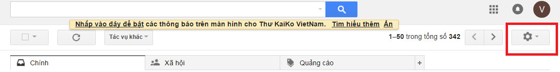 Bạn đăng nhập vào email, click vào biểu tượng bánh xe như trong hình, sau đó chọn cài đặt