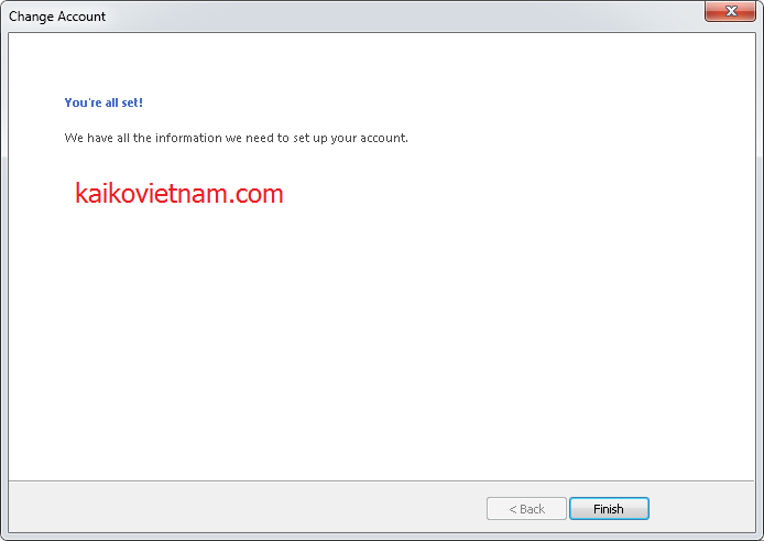 -> Sau đó chọn OK và chon Next để kiểm tra việc gửi nhận mail có ok hay không